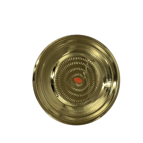 BRASS PLATE (DOT PRESS) SIZE-13 is made from high-quality brass, ensuring durability and a lustrous finish. The 13 size is ideal for serving a variety of dishes or for use in religious ceremonies. Its classic design and polished surface make it a versatile addition to your kitchen or altar, reflecting a blend of traditional charm and practical functionality.