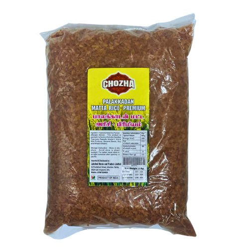 CHOZHA PALAKADAN MATTA RICE 2KG, manufactured by (Brand name), offers the rich, authentic flavor of rice from the Palakkad region. This premium-quality rice is ideal for traditional South Indian dishes such as sambar rice, biryanis, and spicy curries. Known for its slightly reddish hue and hearty texture, CHOZHA PALAKADAN MATTA RICE retains its shape and absorbs flavors beautifully, enhancing the taste of your meals. The 2KG pack is perfect for smaller households or occasional use, providing both quality and convenience. Available for online purchase from Avanfoods UK, a leading Indian online grocery store in the UK, this rice ensures you receive top-quality ingredients delivered directly to your doorstep. Avanfoods UK is committed to offering excellent products and customer service. Buy CHOZHA PALAKADAN MATTA RICE 2KG online from Avanfoods UK and experience the convenience of premium rice delivered right to your home.