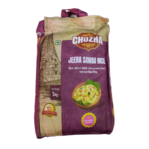 CHOZHA SEERAGA (JEERA) SAMBA RICE PREMIUM QUALITY 5KG, manufactured by (Brand name), is a top-tier rice known for its rich aroma and exceptional quality. This premium variety of Seeraga Samba rice, also known as Jeera rice, is perfect for preparing aromatic biryanis, flavorful pulaos, and traditional South Indian dishes. The small, pearl-like grains are renowned for their unique texture and ability to absorb flavors, making your meals more delightful. The 5KG pack is ideal for families or regular use, providing both convenience and excellent value. Available for online purchase from Avanfoods UK, a leading Indian online grocery store in the UK, CHOZHA SEERAGA (JEERA) SAMBA RICE PREMIUM QUALITY 5KG ensures you receive premium rice delivered directly to your doorstep. Avanfoods UK is known for its quality products and exceptional customer service. Buy CHOZHA SEERAGA (JEERA) SAMBA RICE PREMIUM QUALITY 5KG online from Avanfoods UK for a superior cooking experience.