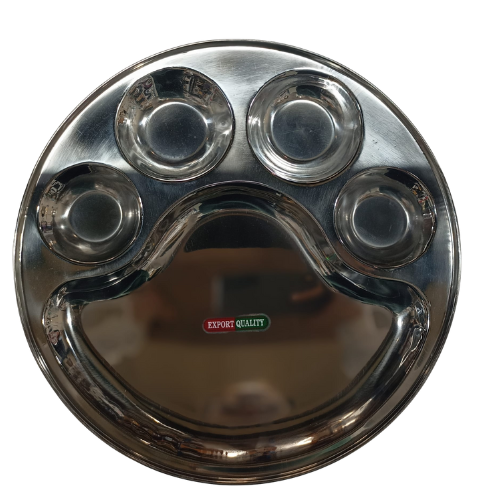 Featuring four partitions, this plate allows you to serve multiple dishes without mixing flavors—ideal for traditional Indian meals like rice, curries, chutneys, and sides. The 12-inch size provides ample space for a complete meal, whether at home, for kids, or even at events and gatherings. Crafted from premium stainless steel, it is rust-resistant, easy to clean, and long-lasting, making it a smart addition to your kitchen.