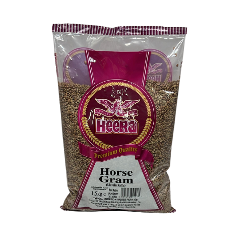 Introducing HEERA HORSE GRAM (ULAVALU / KOLLU) 1.5KG, available for purchase online at Avanfoods UK. HEERA, renowned for its high-quality products, brings you this premium-grade horse gram, a staple in Indian cuisine known for its nutritional benefits. This versatile legume is rich in protein, iron, and fiber, making it an excellent choice for a healthy diet. Perfect for making hearty soups, stews, or traditional dishes, HEERA HORSE GRAM adds authentic flavor and nutritional value to your meals.