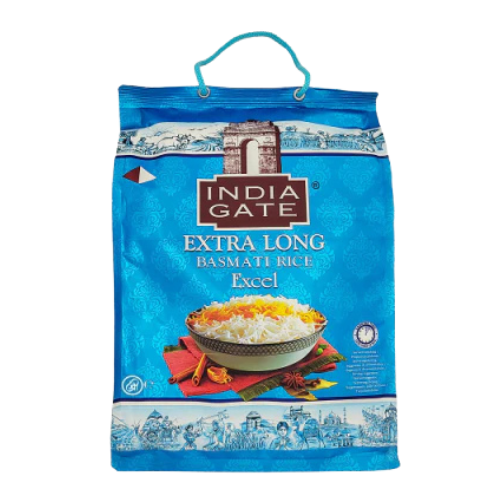 INDIA GATE EXTRA LONG BASMATI RICE (EXCEL) 10KG is a premium quality rice that brings the authentic taste of long-grain basmati rice to your kitchen. Manufactured by the renowned INDIA GATE brand, this 10kg bag offers excellent value, making it perfect for large families, gatherings, or anyone who enjoys cooking fragrant rice-based dishes. Known for its aromatic fragrance, delicate texture, and long, slender grains, India Gate Extra Long Basmati Rice is ideal for preparing a variety of dishes such as biryani, pilaf, fried rice, and traditional Indian curries.