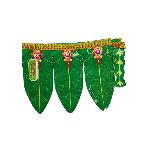 Decorate your home with the elegant and auspicious Mango Leaves Thoranam – Model 2. Thoranams made from fresh mango leaves are widely used in Indian households to celebrate festivals, religious ceremonies, and other special occasions. The use of mango leaves in traditional Indian decor signifies prosperity, positivity, and protection, making it an essential part of spiritual and cultural celebrations.