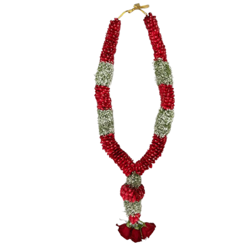 The rich fragrance of rose petals coupled with the delicate beauty of gypsy flowers makes this garland a captivating addition to wedding rituals. It’s ideal for traditional Indian weddings, where garlands play a significant role in various ceremonies. The garland is not only visually appealing but also adds a touch of grace and sophistication to the event.